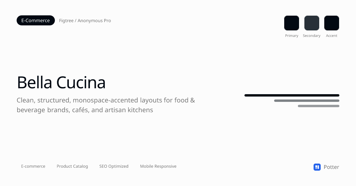 Clean, structured, monospace-accented layouts for food & beverage brands, cafés, and artisan kitchens