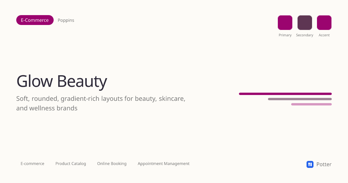 Soft, rounded, gradient-rich layouts for beauty, skincare, and wellness brands